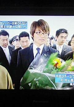 あ、帰国時の杉内くんメガネ姿をとらえました!
